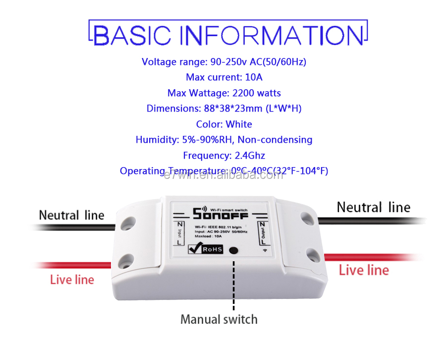 | maximum. Voltage: | AC 90-240V, (50/60Hz) | brand: | Sonoff |