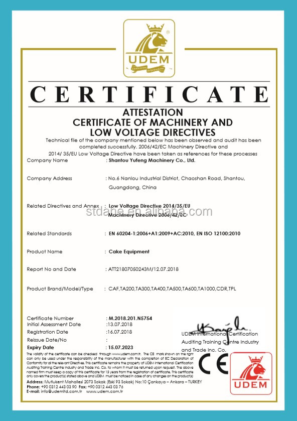 Shantou Yufeng Machinery Co., Ltd. is a leading manufacturer specializing in the research, design, production and distribution of all kinds of bakery equipments in China. We serve the world by providing high-quality, durable and cost effective food service equipments. Our products have good sales and reputation in domestic market, as well as Asia, the Middle East, Africa, Oceania and South America.
