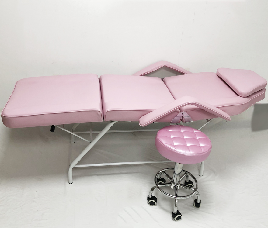 Factory price beauty salon furniture massage table bed beauty bed pink with pink stool