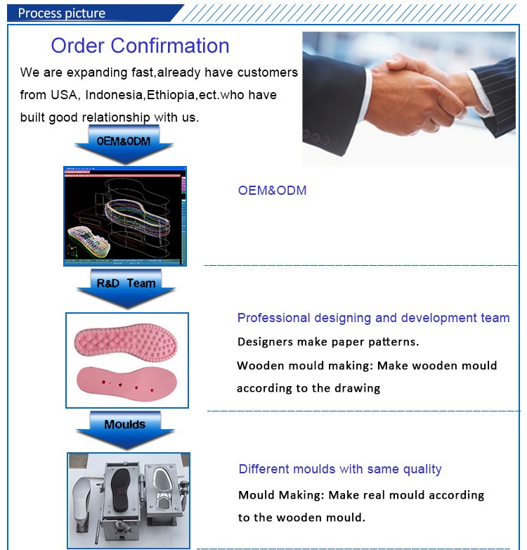 Foshan Yahang Shoe Material Factory covers an area of 3,000 square meters and has convenient transportation. Our company specializes in the production of soles of PU, TPR, TR, TPU, rubber, PVC and other materials, and produces customized outsole molds for customers. Our products have been exported to many different countries and enjoy a good reputation in Italy, the United States, Israel, Belarus, Bangladesh, New Zealand, Nigeria and other markets. So far, we have established trade relations with customers in more than 20 countries all over the world. We warmly welcome friends from all over the world to visit our factory and look forward to establishing business relationship with you and developing together. | ![]() |