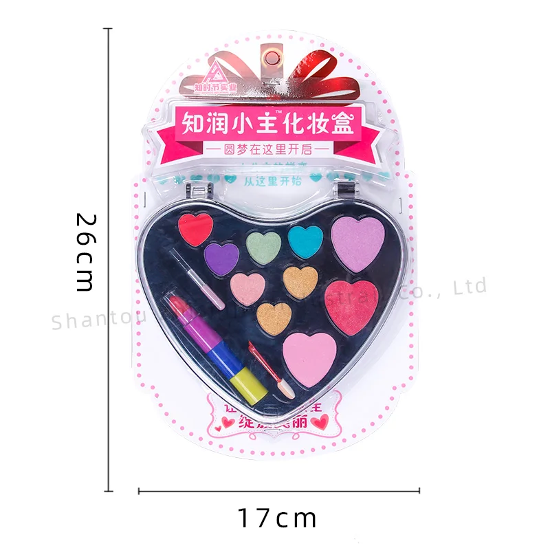 Fashion Girls Dress Up Cosmetic Kit Heart Shape Kids Eye Shadow and Lipstick Toy Make Up