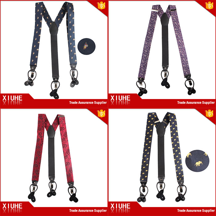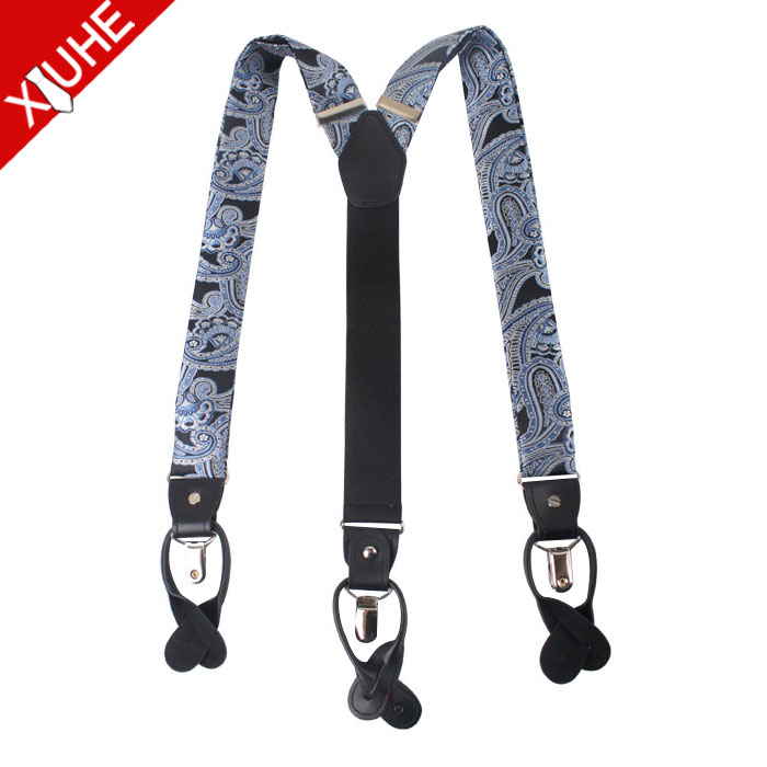 Fashion Paisley Tie Fabric Suspenders Men's Pants Paisley Tie Suspenders and Bow Tie Set