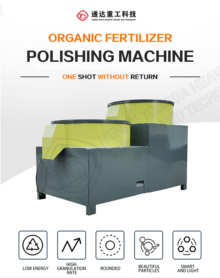 The organic fertilizer polishing machine is a circular throwing device equipped on the basis of the organic fertilizer and compound fertilizer granulator, which makes the particles roll into balls at one time, without returning materials, high ball forming rate, good strength, beautiful and practical.
