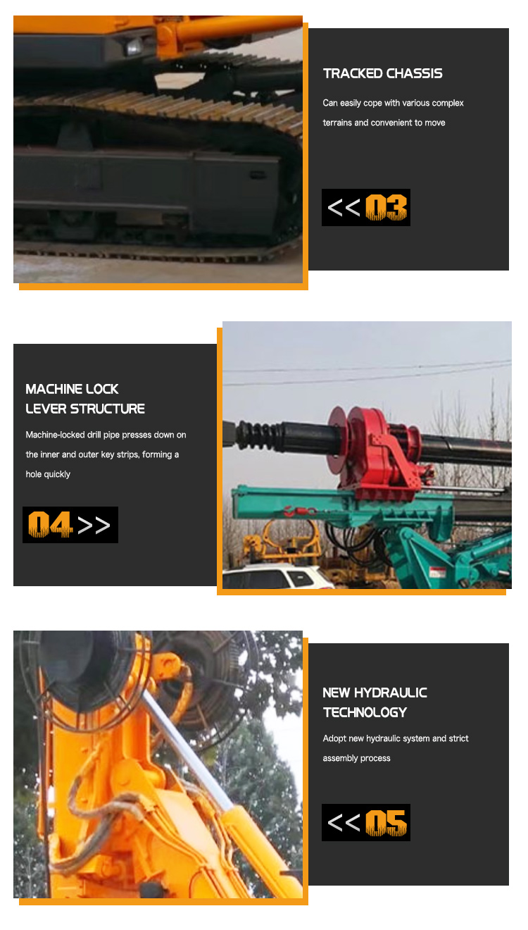 Rotary drilling rigs have the advantages of flexibility, small tonnage, simple operation, 360-degree free rotation, wide application range, high construction efficiency, stable performance, ultra-fast piling speed, fast movement, convenience for special sites, small investment, and high speed. return.