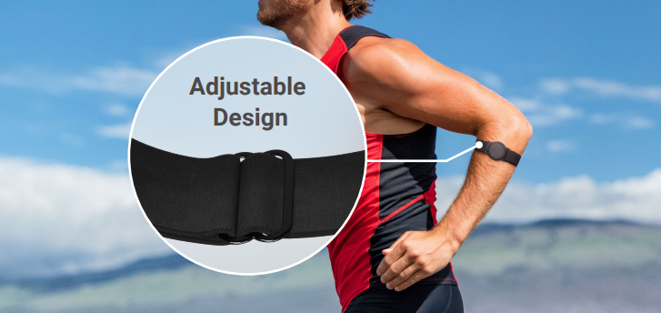 The unit is made of soft textile that stretches to fit the arm securely and comfortably. The buckle adjusts the length of the shoulder straps to fit a variety of arm circumferences. The material is machine washable for everyday use, easy to clean and durable.