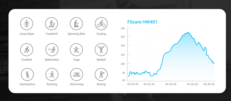 The heart rate sensor is detachable and can be used separately with different types of accessories to facilitate different sports scenarios. Fitcare can also customize accessories for specific training types.