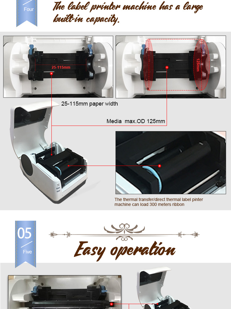 5. Our ribbon printer can match the width from 25mm to 115mm,