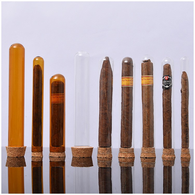 Cigar glass tubes, similar to glass test tubes, have a flat top and a round bottom. It can be made of ordinary glass or borosilicate glass for better performance.