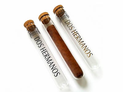 Cigar glass tubes are custom made with closures and decorative hangers.