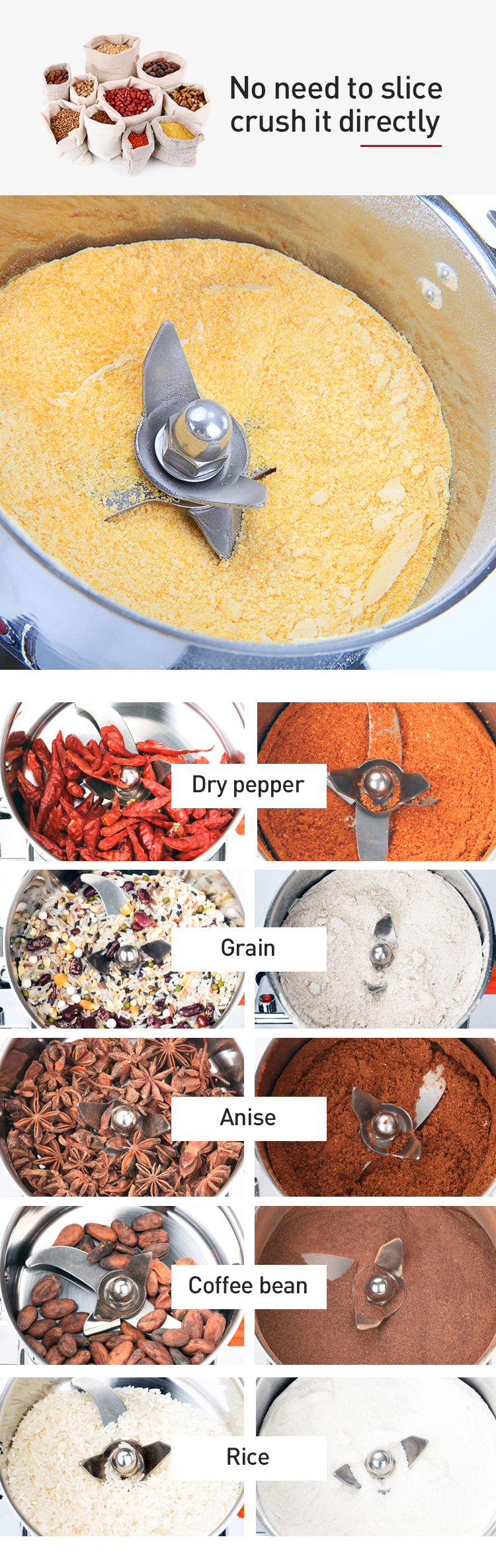 For Sale 800g Equipment Flour Mill/Corn Mill Grinder/Coffee Grinder