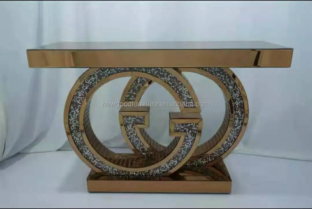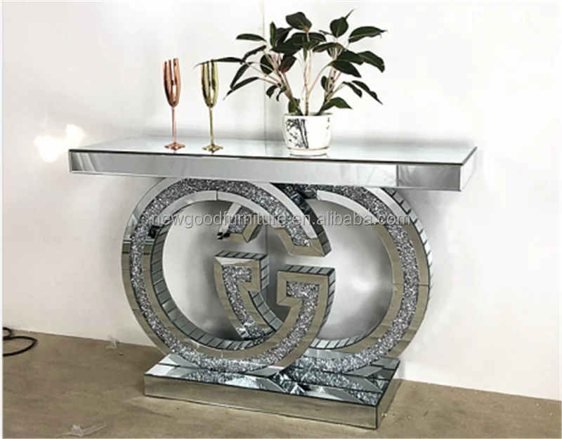Foshan New Good Furniture Mirror furniture New Design Light Luxury Double G G Diamond Silver Mirrored Console Table