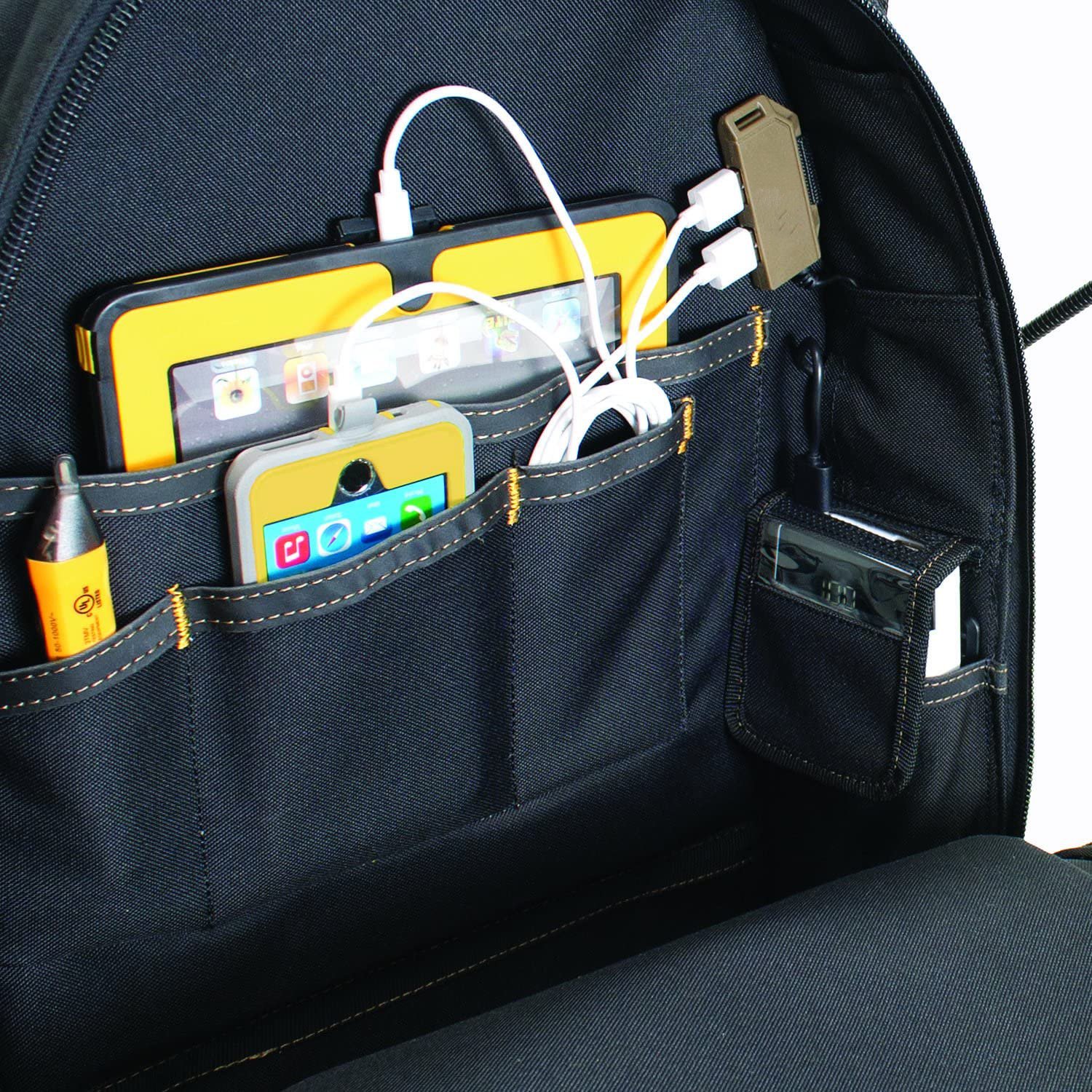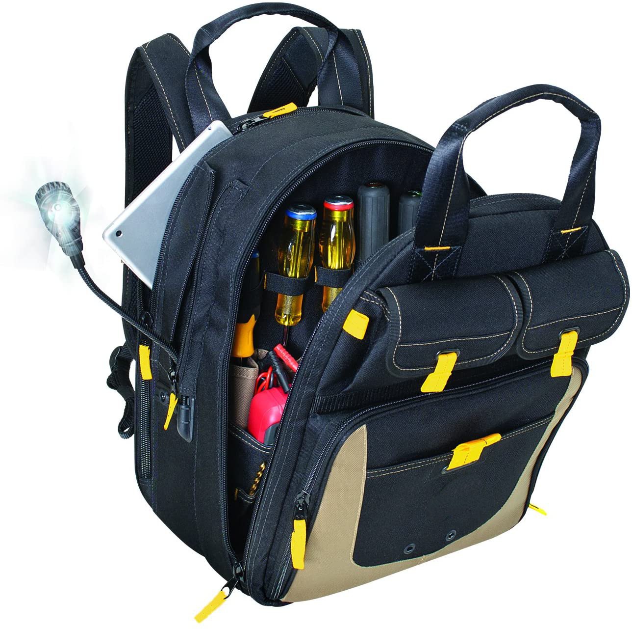 Free Sample Custom Leathercraft Multi Tool Bag E-Charge Lighted USB Charging Tool Backpack, 36 Pockets