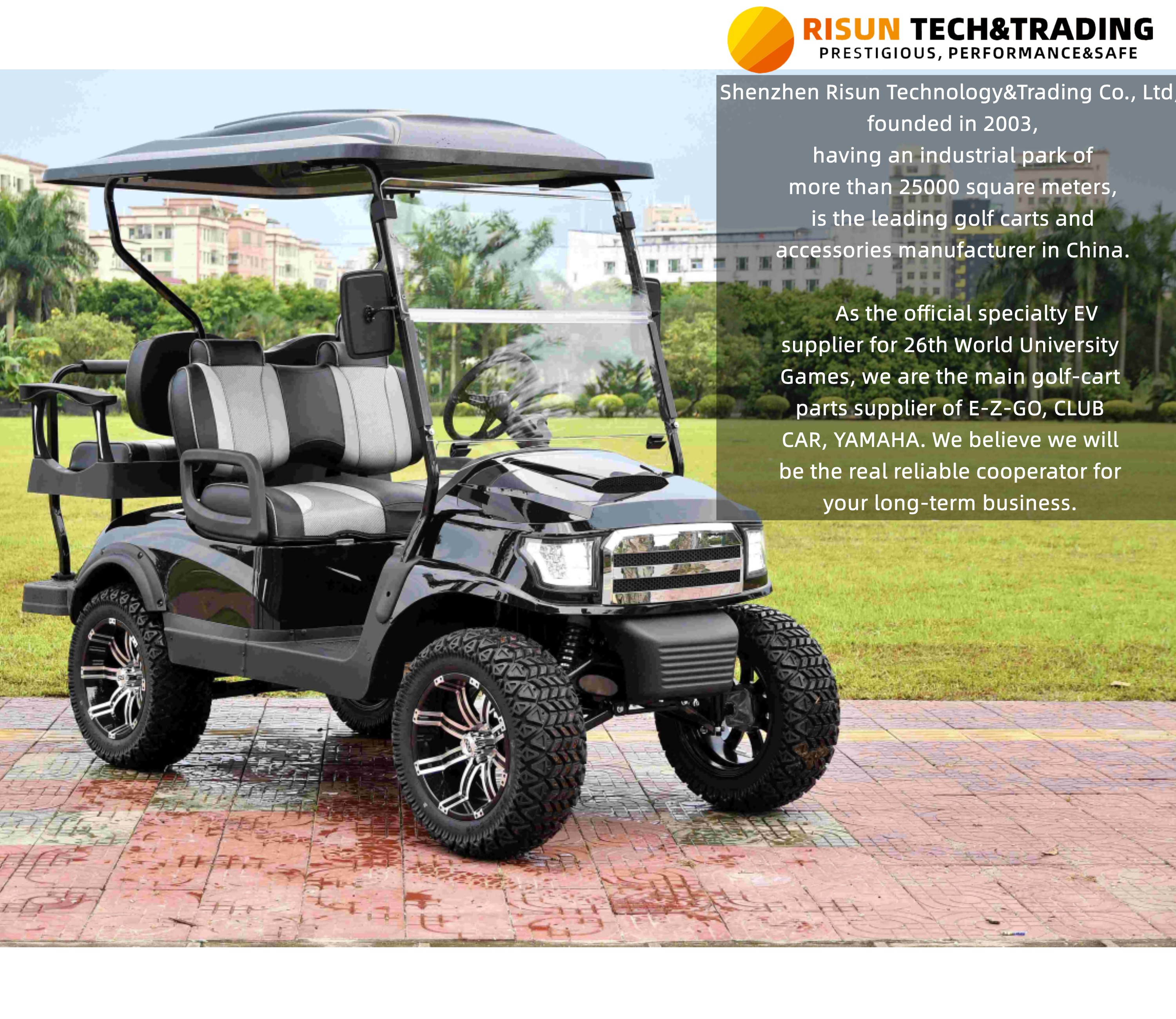 Shenzhen Risun Technology Co., Ltd.Established in 2022, located in Nanshan District, Shenzhen City, China. We are the exclusive sales representative of the most famous golf cart OEM/ODM and leading golf cart and accessories manufacturers in Shenzhen, covering an area of over 25000 square meters.