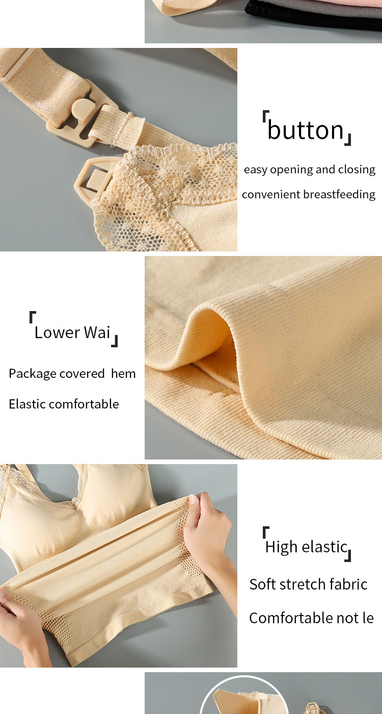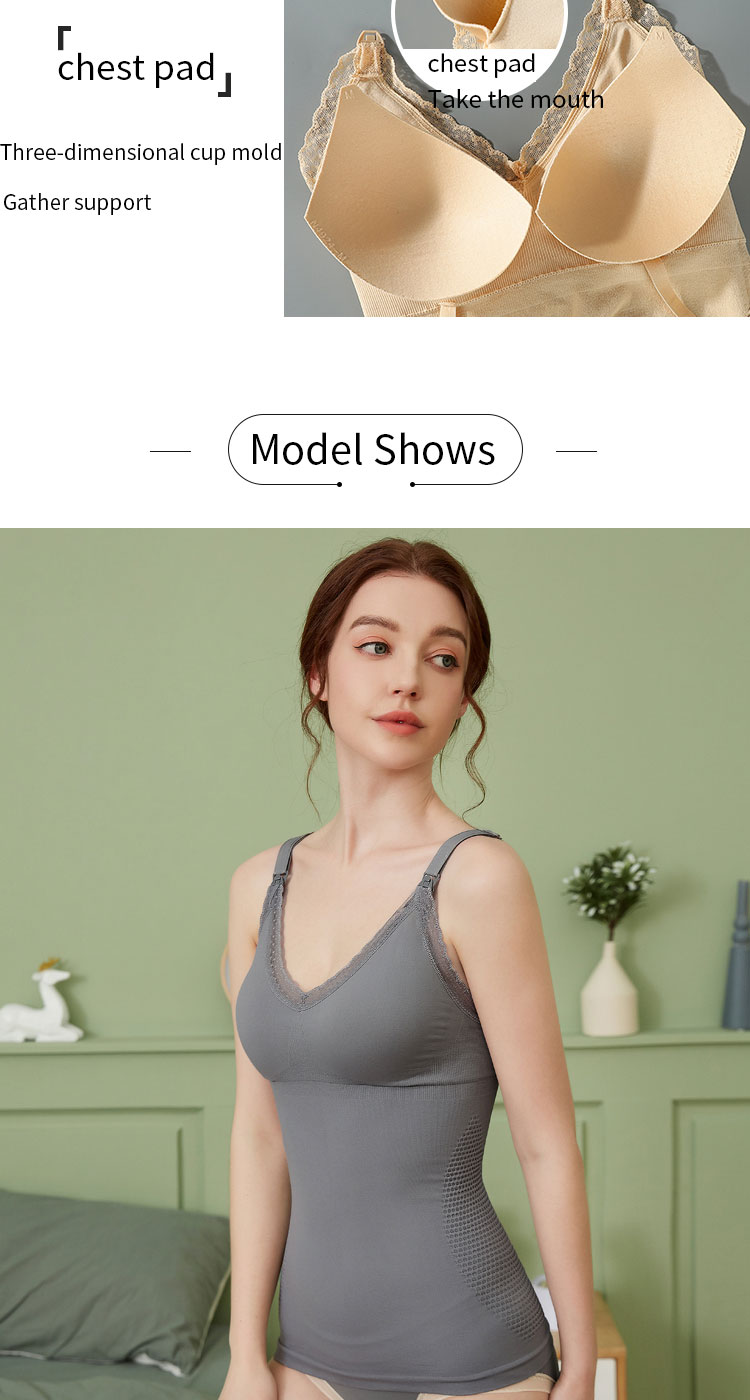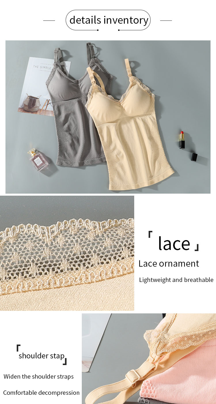 Front Opening Breastfeeding Tank Top Bra One Piece Seamless Wireless Lace Camisole Maternity Nursing Tank Top Women's Built-in