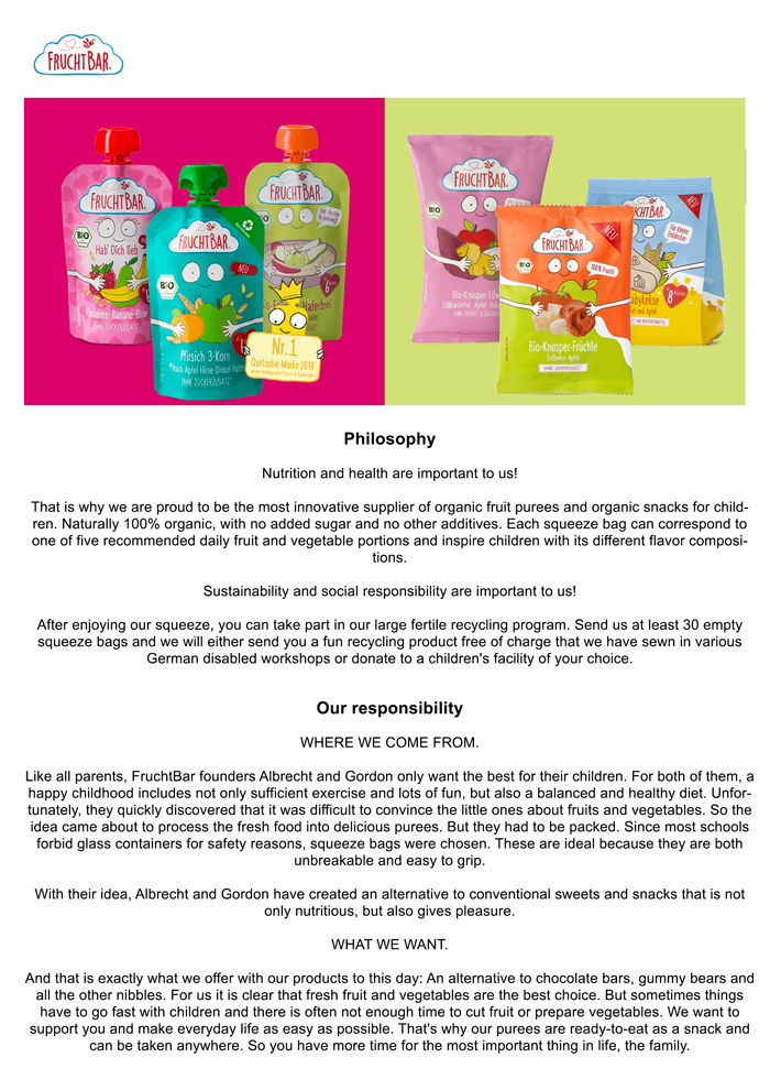 | product name: | Fruchtbar Organic Puree | raw material: | Strawberry Banana Oatmeal |