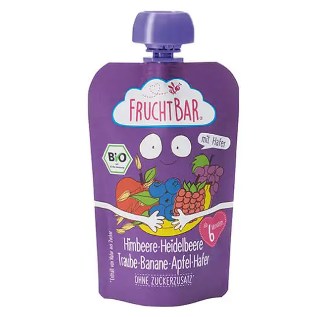 Fruchtbar Organic puree porridge with raspberry-cranberry-grape-banana-apple-oat for baby food 100g