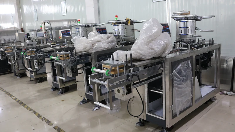 flat plate automatic blister packing machine for liquid blistering pack also has the PVC feed photoelectric detection. The emergency stop button and heat sealing station of blister packing machine for liquid blistering pack adopts dual-cylinder and dual-axis linkage.