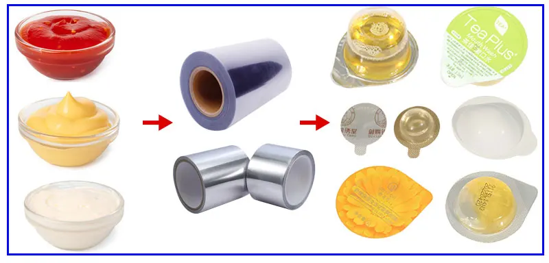 | Suitable for: | honey/butter/sauce/jam/cheese/oil/ketchup; | Thickness and Width of PVC: | 0.15~0.5*120mm; |
