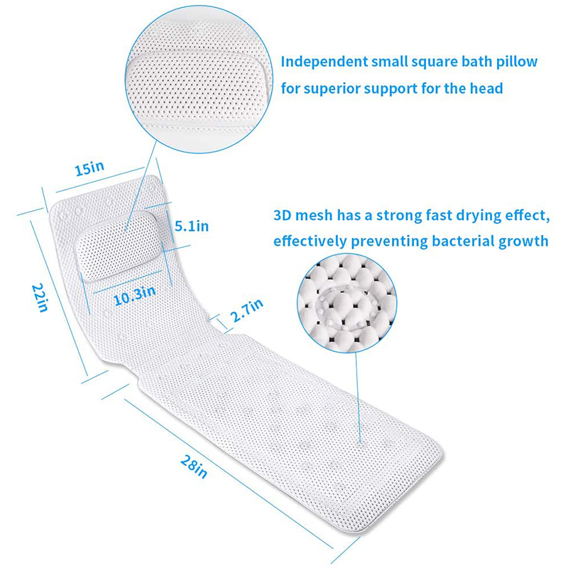 Full Body Bath Pillow Non-Slip Upholstered Bath Pillow Luxury 3D Air Mesh Spa Bathtub Mat Spa Bath Pillow Details: