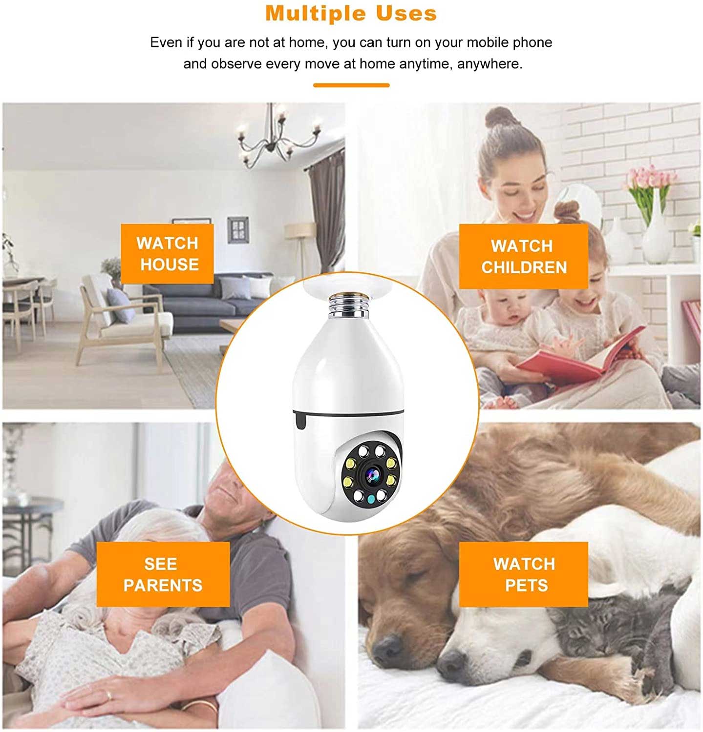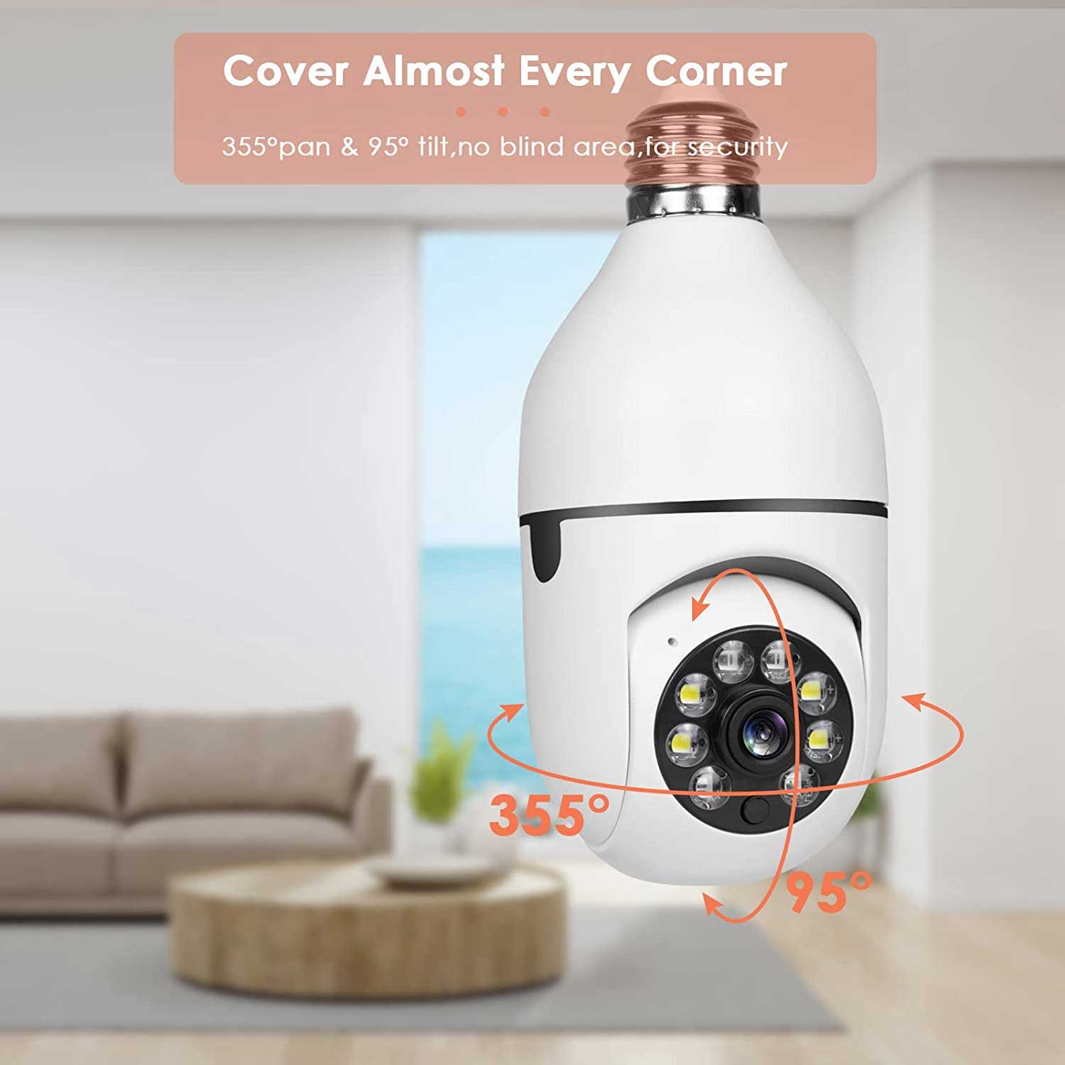 Full Color Night Vision CCTV Camera V38 Pro Auto Tracking Security Camera Ptz Wifi Bulb Camera with E27 Socket