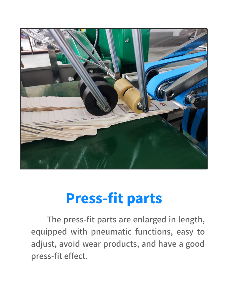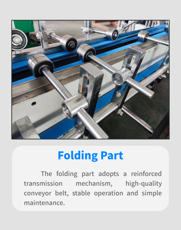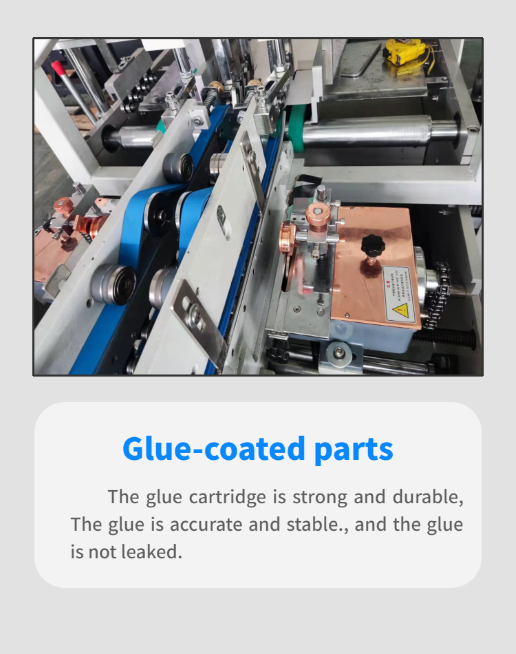 The machine is sturdy and durable, easy to install, simple to operate, and has perfect box folding and box gluing effects. The paper output part is independently controlled by a servo motor, making it more stable and paper feeding smoother. Small size, small footprint, easy to transport.