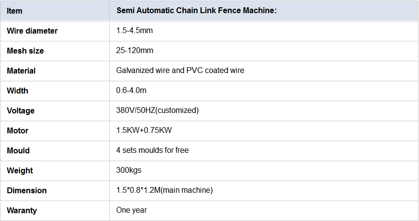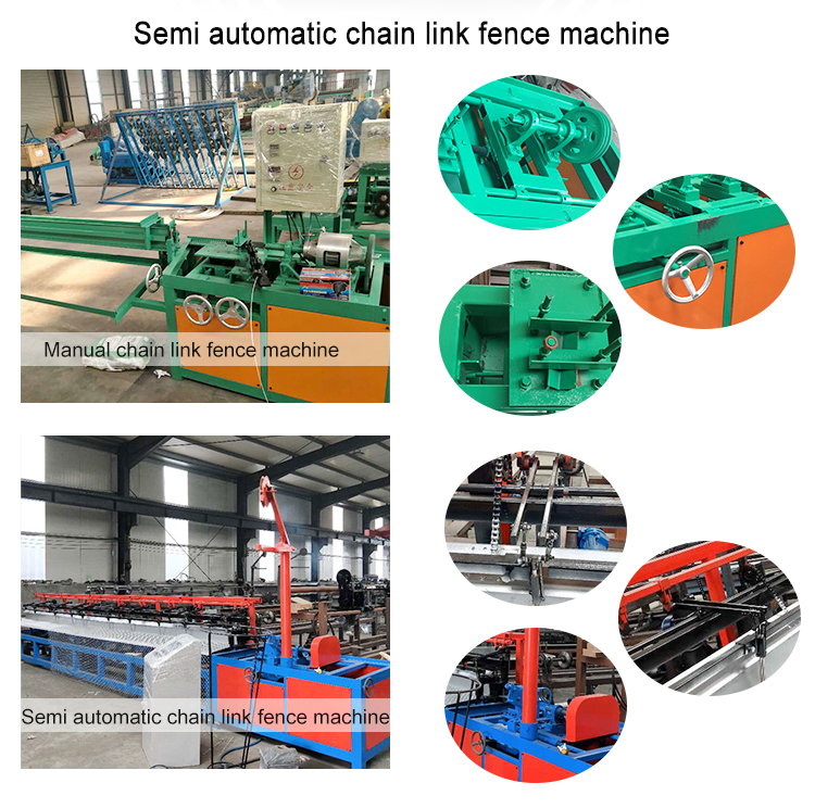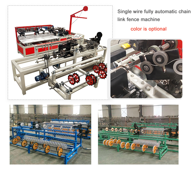 Monofilament Automatic Chain Link Fence MachineAdopt monofilament wire feeding system, can weavehole sizefrom25mm*25mm to 120mm*120mmWire diameter from1.5mm to 5.0mm.This kind of machine is very popular in Indian market. It works with hard wires and works very well.