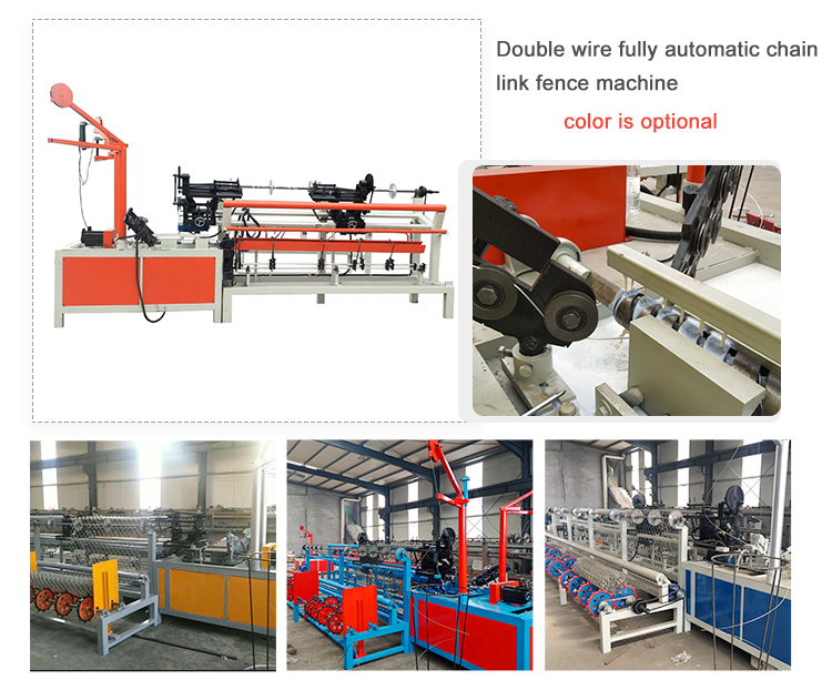 Double wire automatic chain link fencing machineAdopt double wire feeding system, can weavehole sizefrom30*30mm to 120*120mmWire diameter from2.0mm to max. 5.0mm.The machine needs to be processed with soft wire, and the production capacity is high.