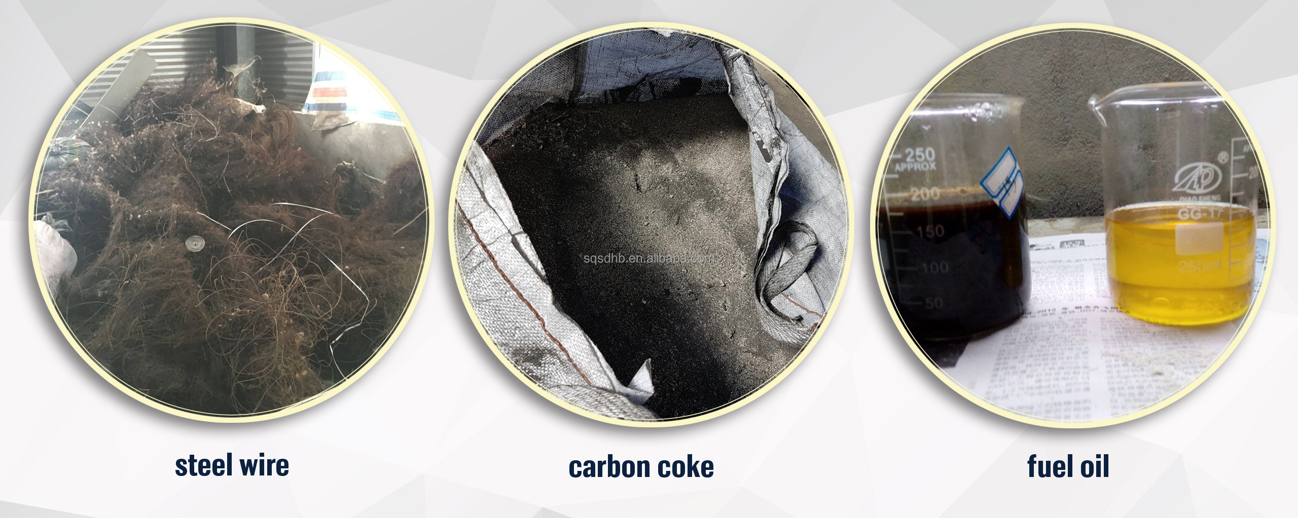 | Waste rubber/tire | Fuel 40%-45% | Carbohydrates 30%-40% | 10%-15% steel | 10%-15% gas |