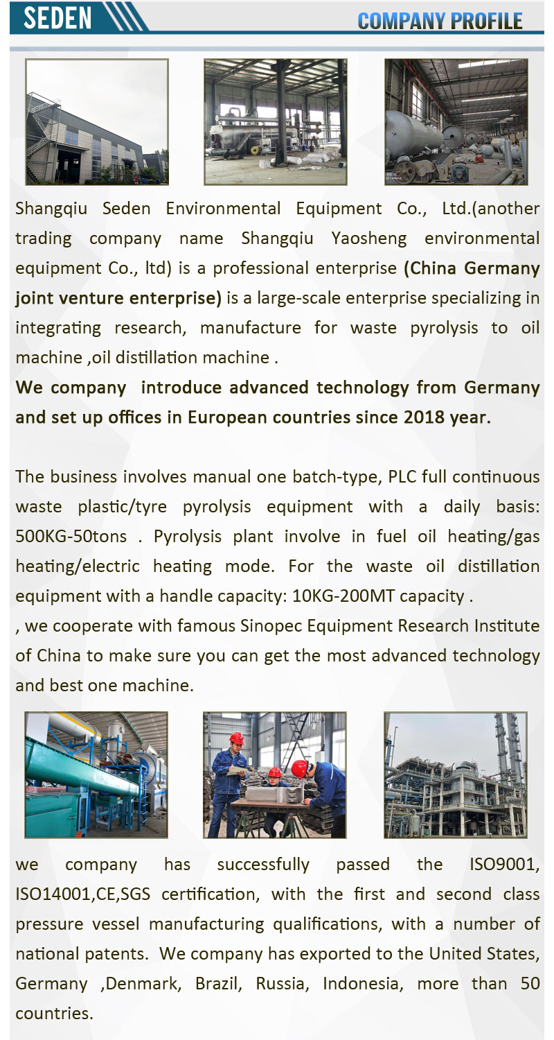 | Steel: | Q345R&SS316L/304SS | Raw materials: | Waste tires & waste plastics & sludge & heavy oil |