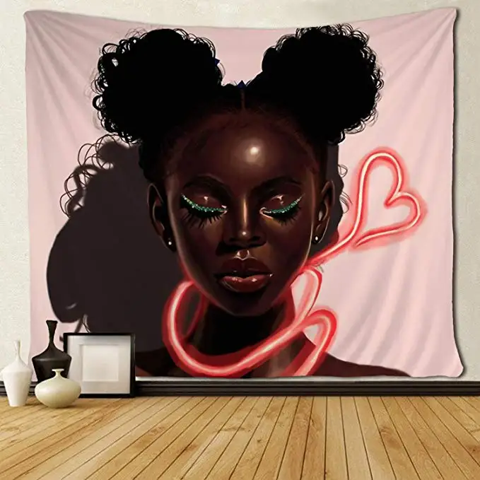 G&D Black Girl Hippie Art African American Hanging Tapestry for Bedroom Living Room Dormitory