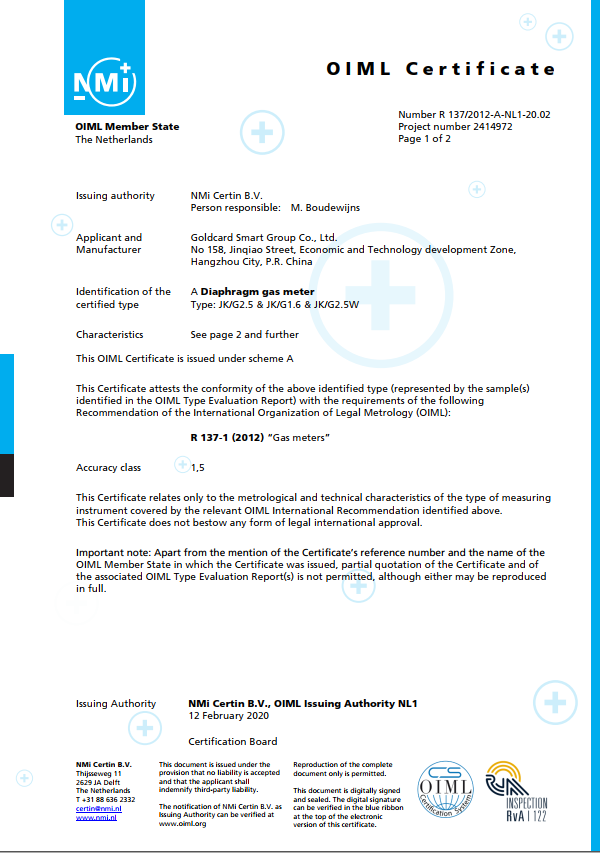 Inside the meter, there are four chambers, separated by two diaphragms. When the gas flows, the diaphragm moves alternately because different pressures appear in the four chambers. The gas flow is calculated by a series of transmission and variable speed mechanisms, and finally displayed on the counter.
