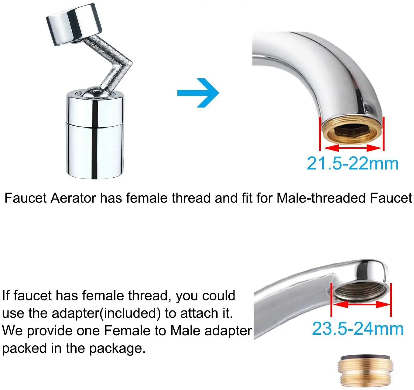 720 Degree Swivel Sink Faucet Aerator, Big Angle Large Flow Aerator Dual Function Kitchen Faucet Aerator, Rotatable Bubbler Tap Aerator Sprayer Attachment for Kitchen Bathroom