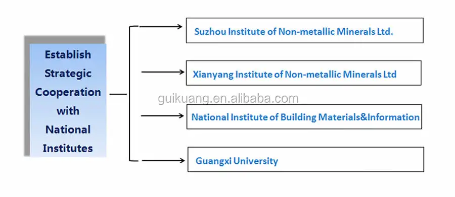 GUIKUANG has built long-term strategic partnership with National Institute of Building Materials and Information, Suzhou Institute of Non-metallic Minerals Ltd., Xianyang Institute of Non-metallic Minerals Ltd, Guangxi University. Besides, GUIKUANG sets up "Grinding Mill Technology Innovation Center", " Powder Processing Test Base", " Powder Technology Research Center " and " Research Internship Base” with the above institutes respectively. With impeccable service system, ,GUIKUANG is capable of providing intelligent control, remote control and the overall solution for grinding mill production line.