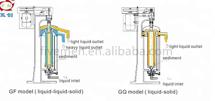 There is two types, for GQ tubular centrifuge which is used for the clarification.