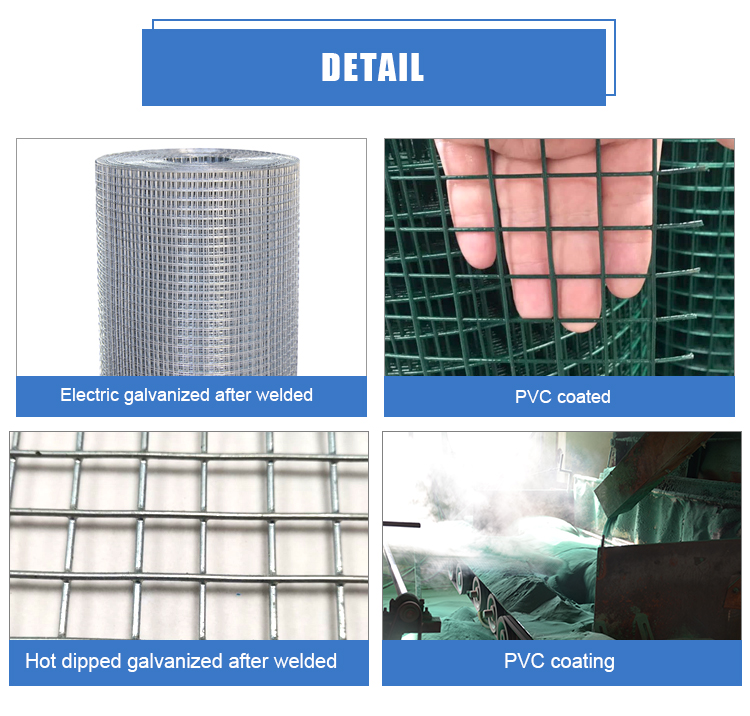 Galvanized before welding, Galvanized after welding, Hot-dip galvanized before welding, Hot-dip galvanized after welding, PVC coating, Stainless steel wire |