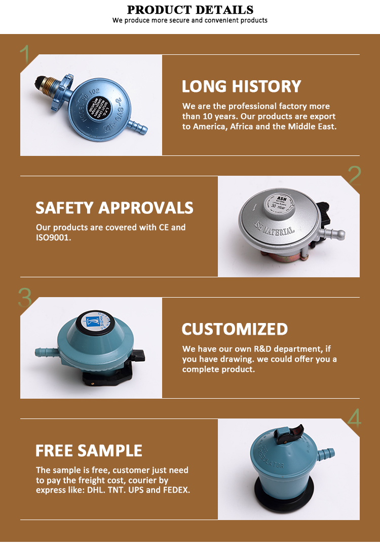 | Shipping Details: | 1-5 days, if with your custom logo. | Packaging Details: | Professional Team Philippines Italy Gas Regulator Standard Export Packaging |