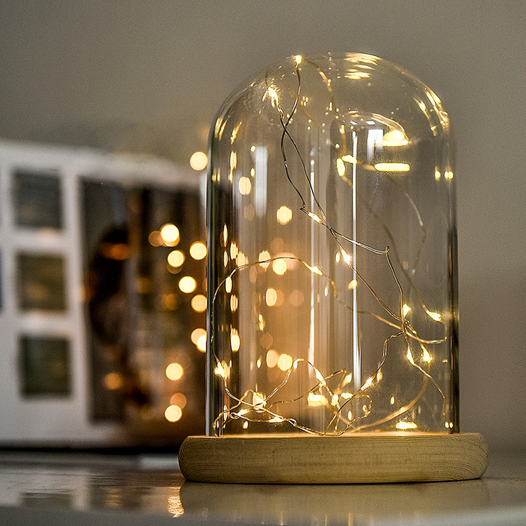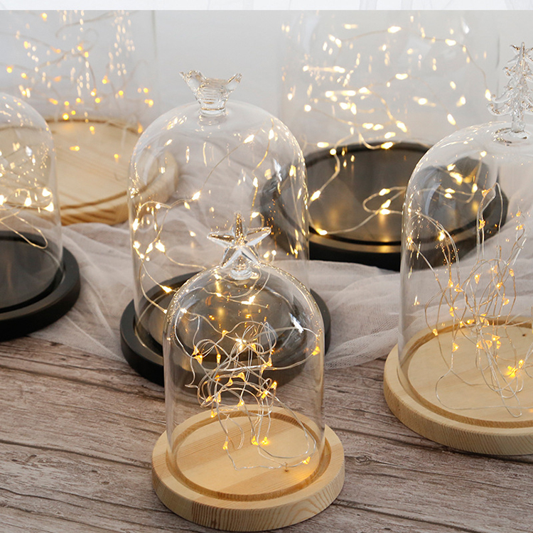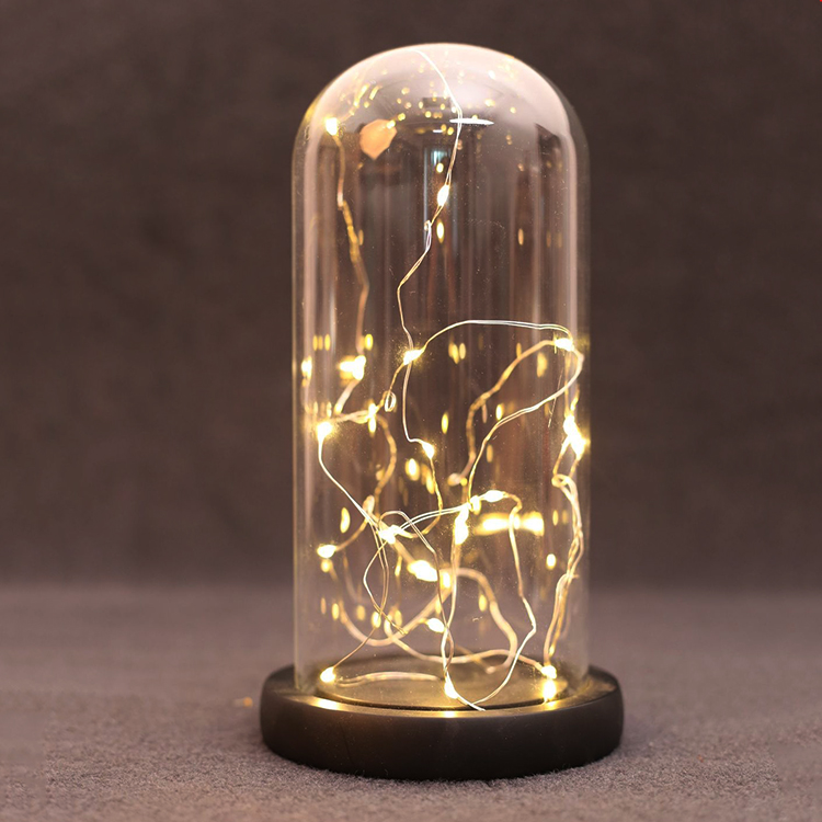 Glass Dome Wooden Base Wholesale Bell Jar Candle Display Eternal Rose With LED Light