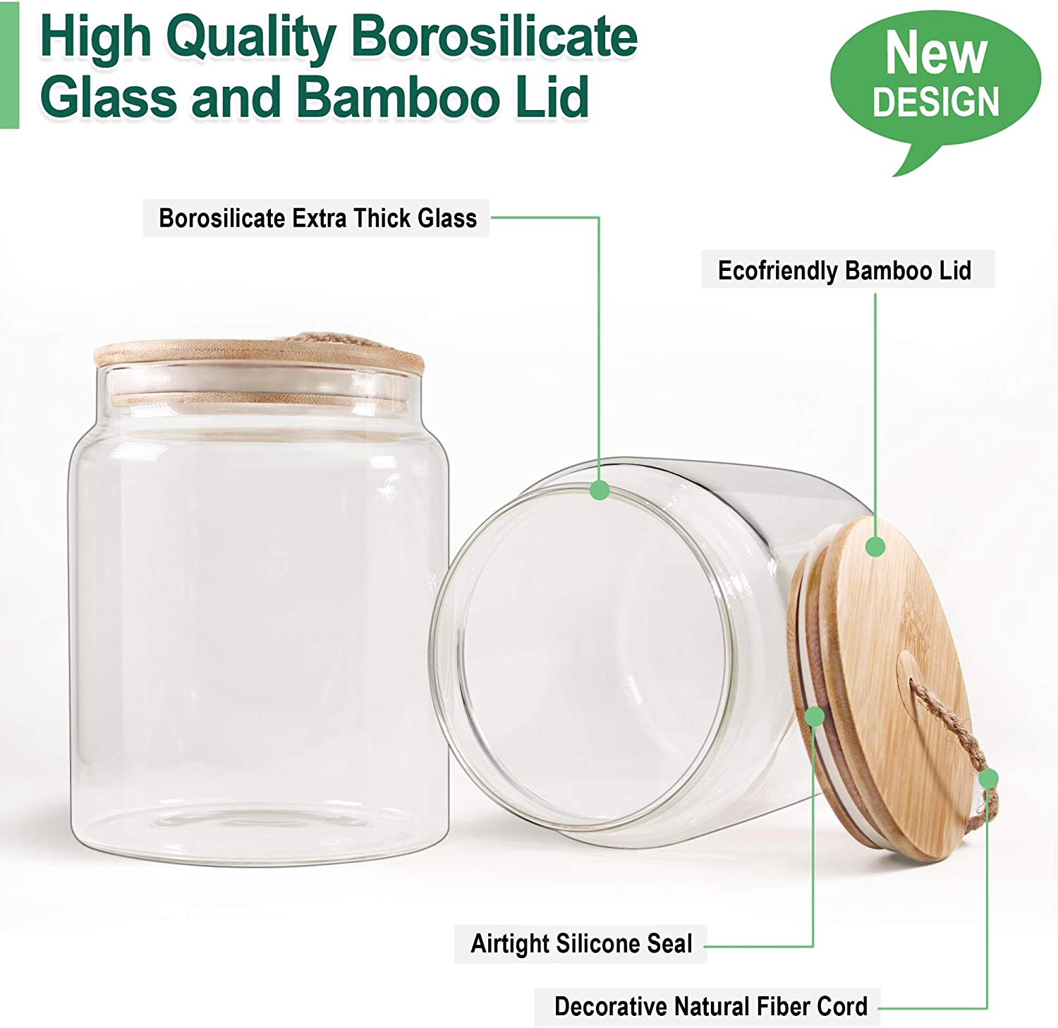 Glass Jar with Bamboo Lid Sealed Glass Jar for Food Storage Set with Bamboo Lid (64OZ*2PCS)