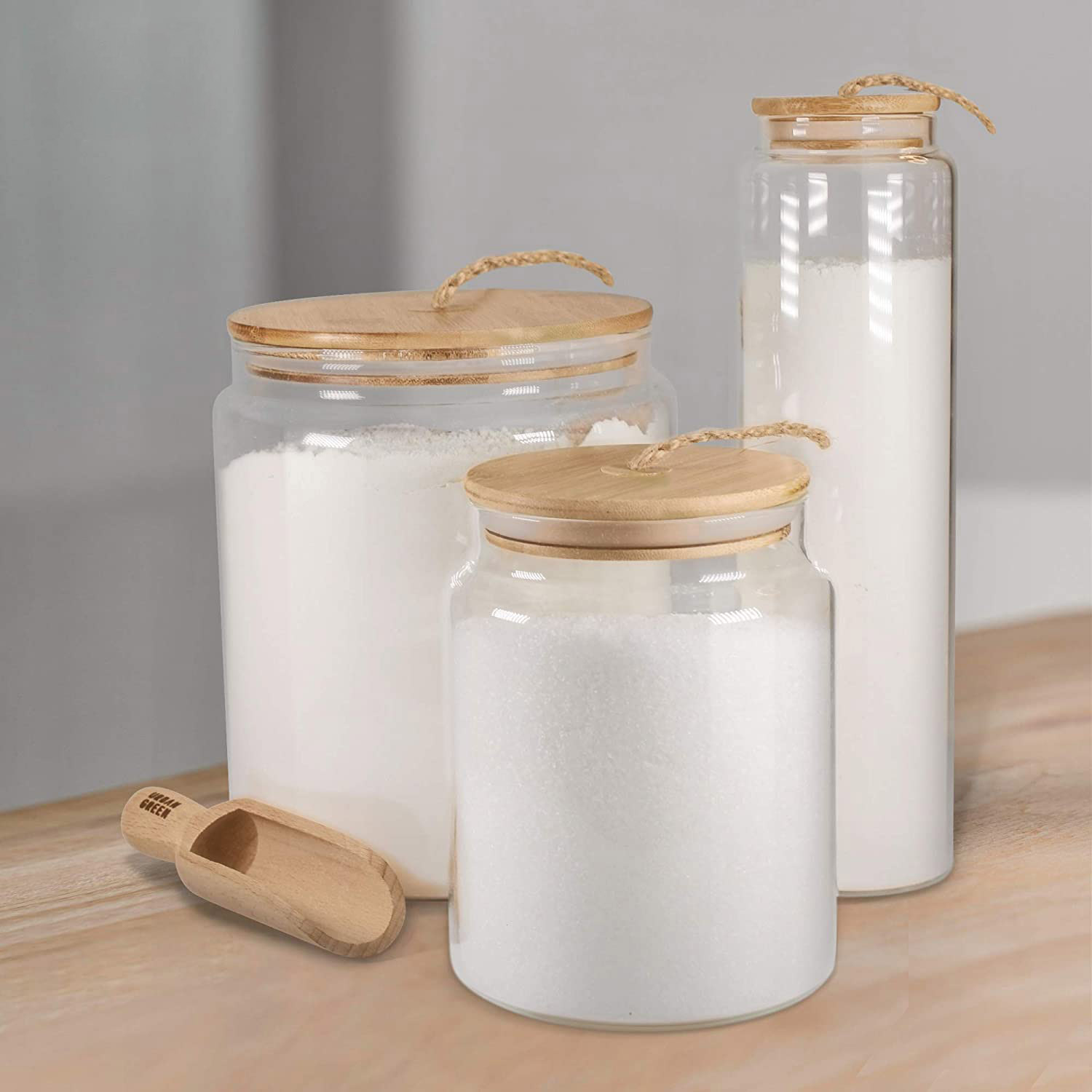 New Design Glass Jars 2021: The newly designed glass jars with bamboo lids can meet all your needs in the kitchen, home office, bathroom vanity or around the house. Our products are practical, functional, stylish and can be found everywhere. Our new design, with a natural fiber cord on the lid, is a very thoughtful and sustainable gift product that resists heat, cold, and cracks.