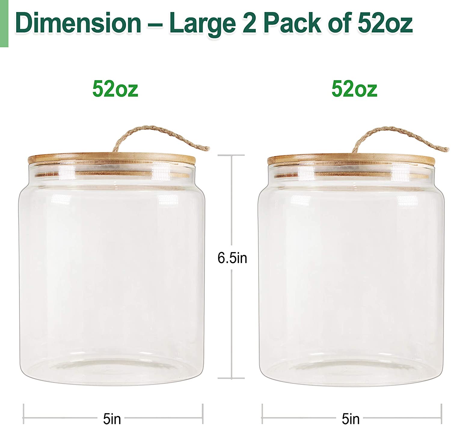 Glass Jar with Bamboo Lid Glass Sealed Food Storage Container Glass Jar Set with Bamboo Lid (64OZ*2PCS)