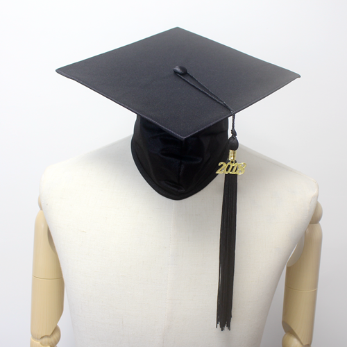 College Shiny Black Graduation Cap Tassel & Year Tag