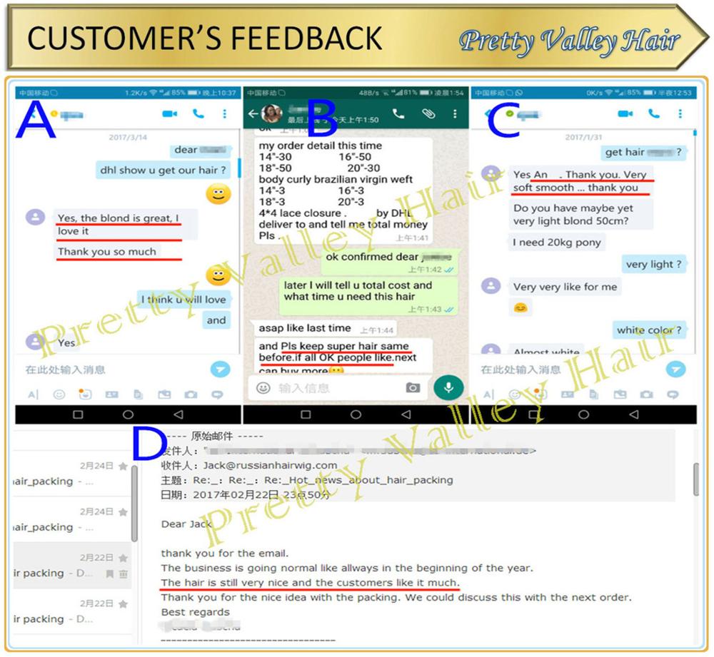 3: Our factory has professional production workers. Professional hair stylist and professional sales team! can supply youTop quality and most popular color/texture hair With the best service!