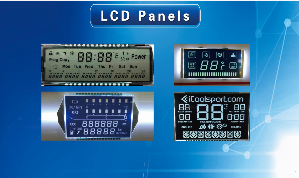 The annual production capacity is 1.2 million pairs of LCD (14*16"), 800,000 pieces of LCM, and 600,000 pieces of backlight. LCD products are divided into TN, HTN, STN, and FSTN. LCM products are divided into COG and COB.