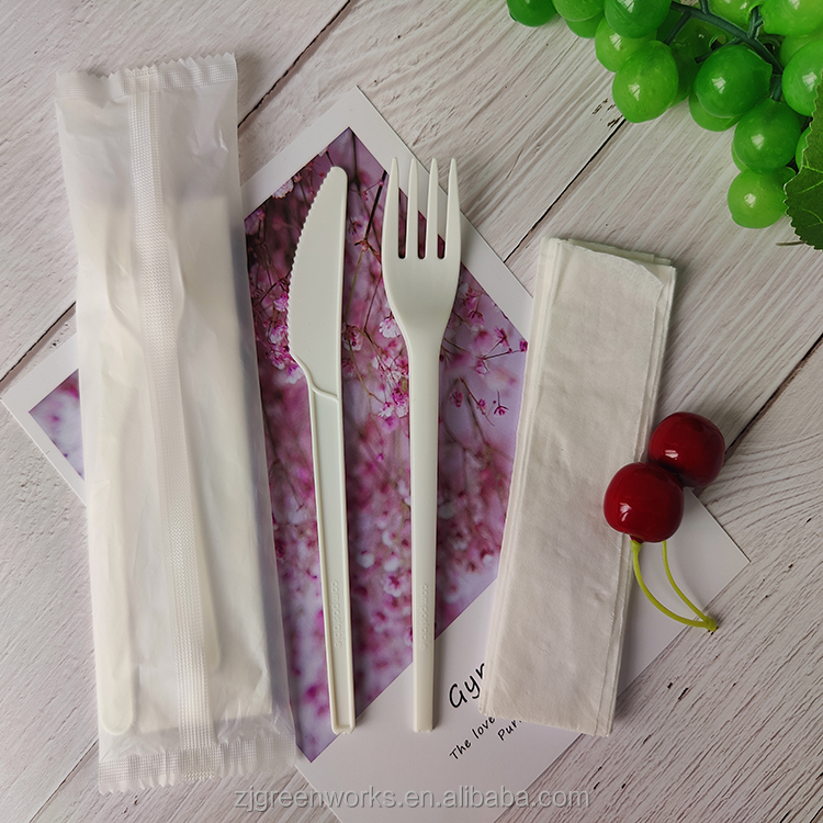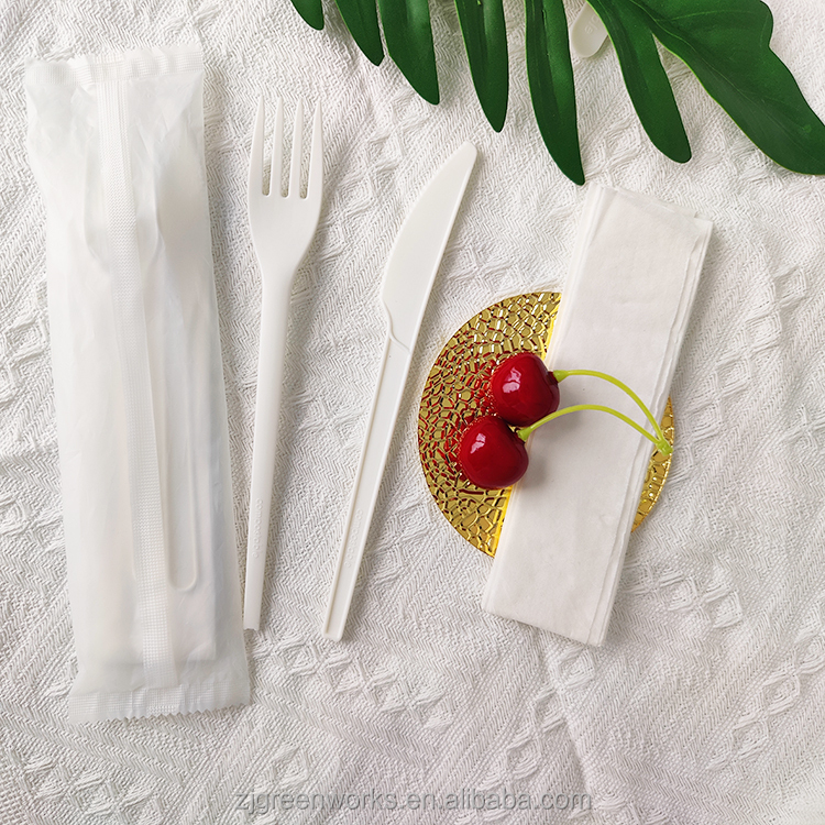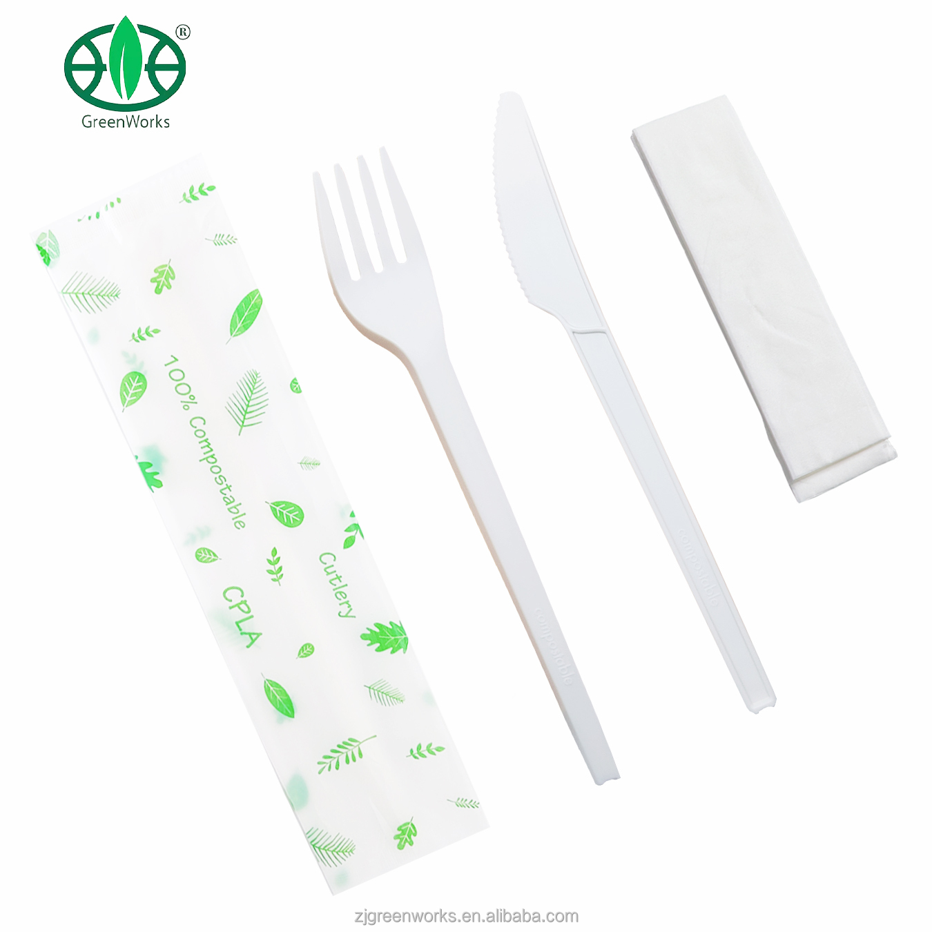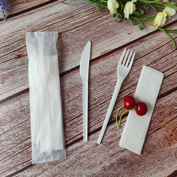 GreenWorks Eco-Friendly Biodegradable Sturdy CPLA Wrapped Disposable Plastic Knife Fork Napkin