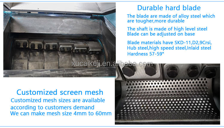 7. The plastic shredder adopts sealed bearings to ensure the long-term perfect operation of the bearings. The knife shape is reasonable, so that the product particles are uniform. The knife holder is heat-treated for high strength.
