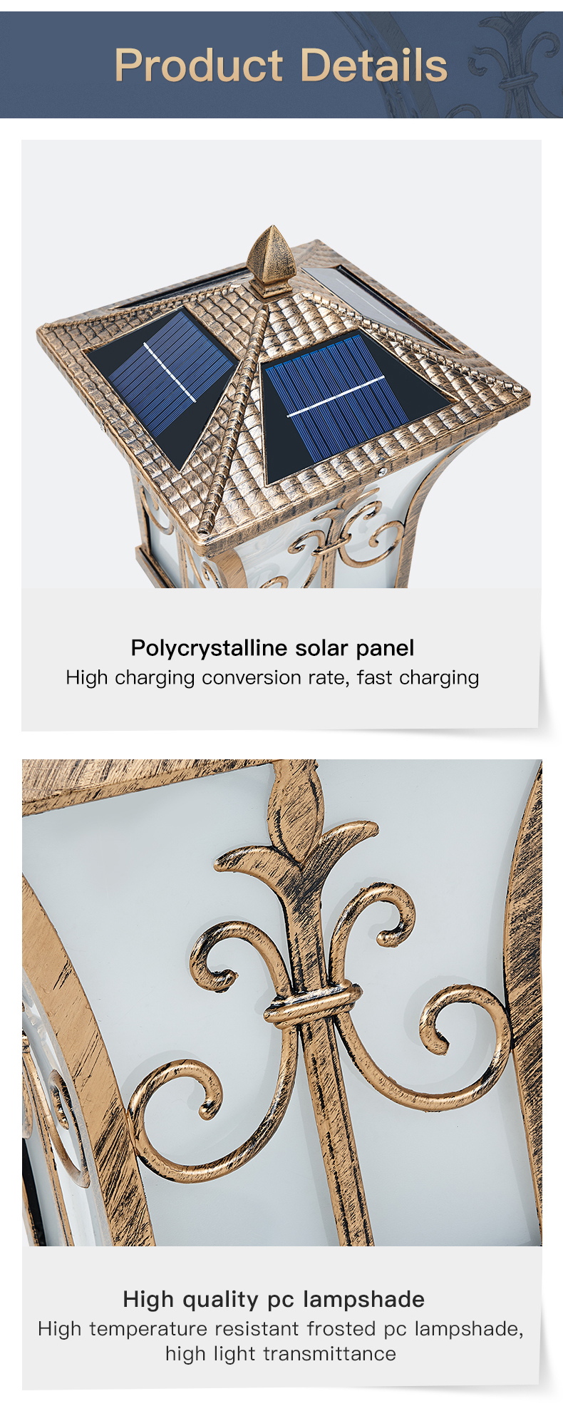 HIGH CLASS China Manufacturer High Brightness Classic Waterproof Outdoor Solar Garden Post Light