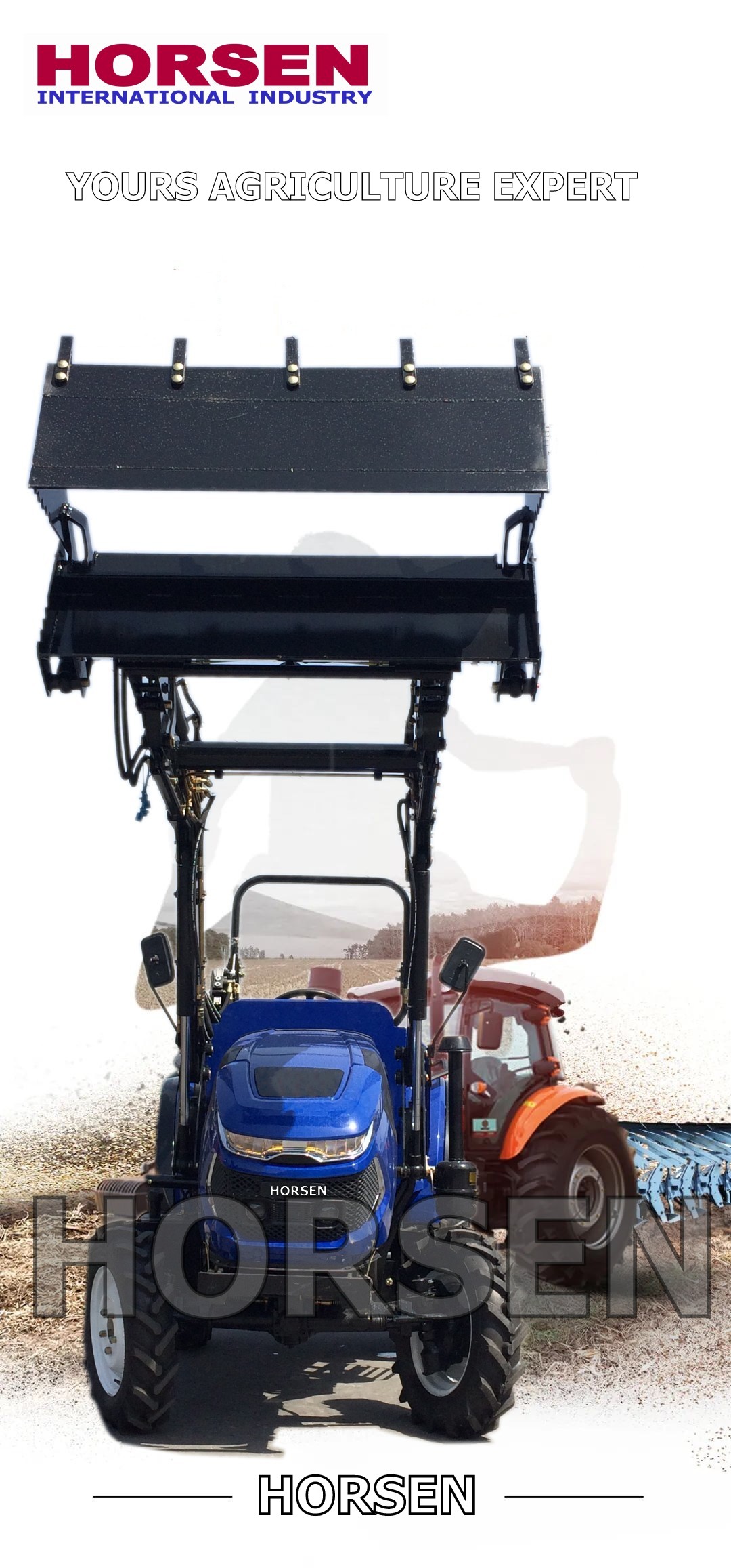HORSEN CHINA 40hp 45hp 454 compact 4wd farm tractor with 4 in 1 front loader and shovel for sale.