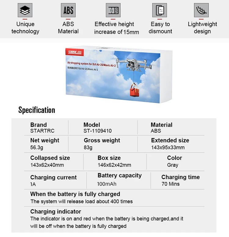 Suitable for DJI air 2s and Mavic air 2 ,maximum payload weight is 500g;