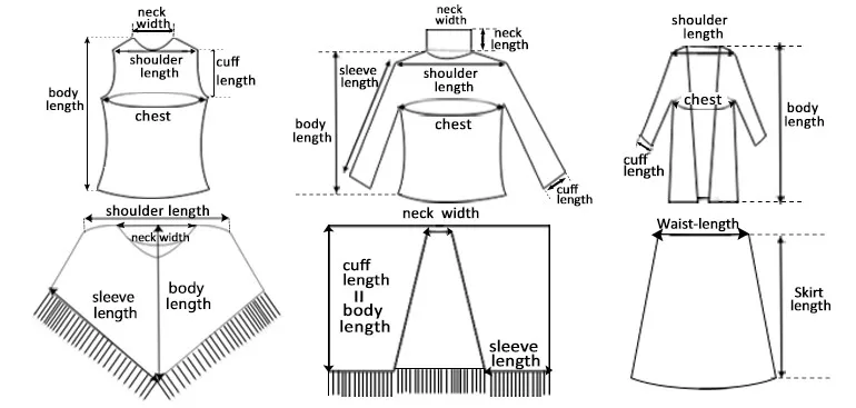 | Size | Body length | Shoulder length | Chest | Sleeve length | Cuff length |