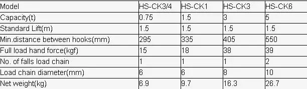 LOAD CHAIN DIA: 6MM/6MM/8MM/10MM